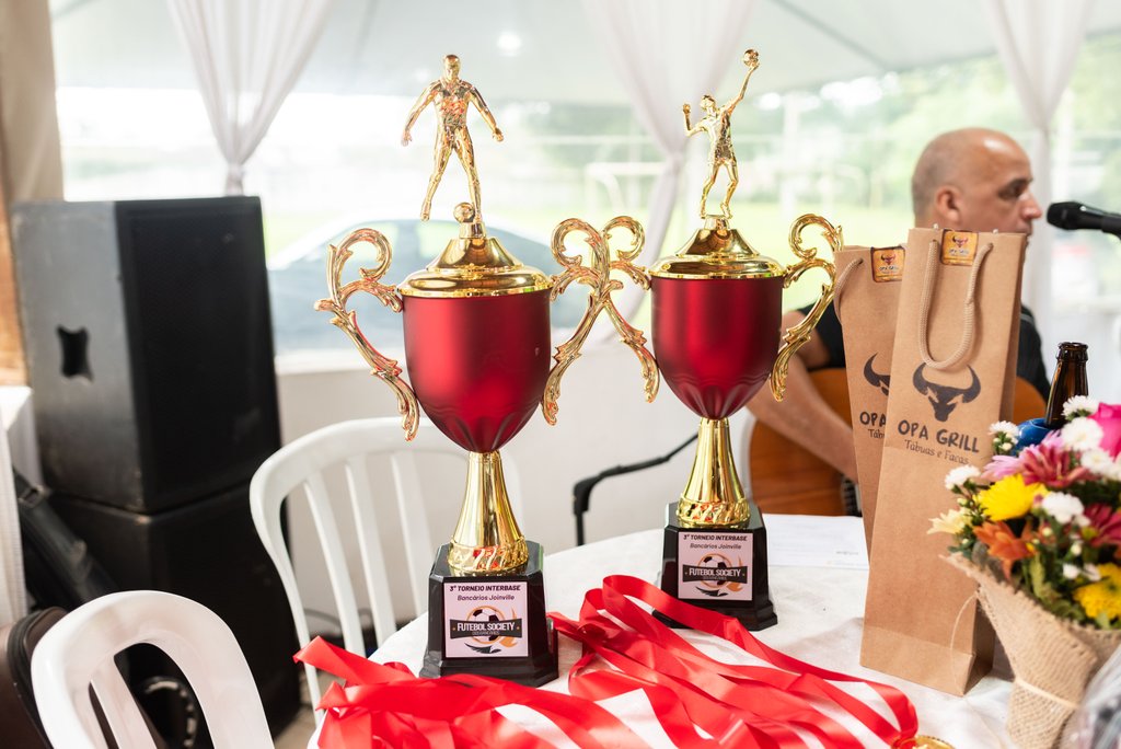 Um detalhe curioso e bem-humorado também marcou o torneio: as medalhas e troféus da modalidade de voleibol exibiam símbolos de futebol. A coincidência gerou boas risadas entre os atletas e torcedores, mas logo foi esclarecida pelo coordenador Joacir, que explicou que “o Sindicato dos Bancários de Joinville nunca teve, até então, um departamento esportivo específico para o voleibol, e que por isso se manteve o tradicional símbolo do futebol — uma forma de respeito à história do torneio”. Com o sucesso e a empolgação que o voleibol despertou nesta edição, Joacir adiantou que já se estuda criar um campeonato feminino da modalidade, e garantiu, entre risos, que “da próxima vez o troféu vai subir à rede — com bola de vôlei e tudo!”