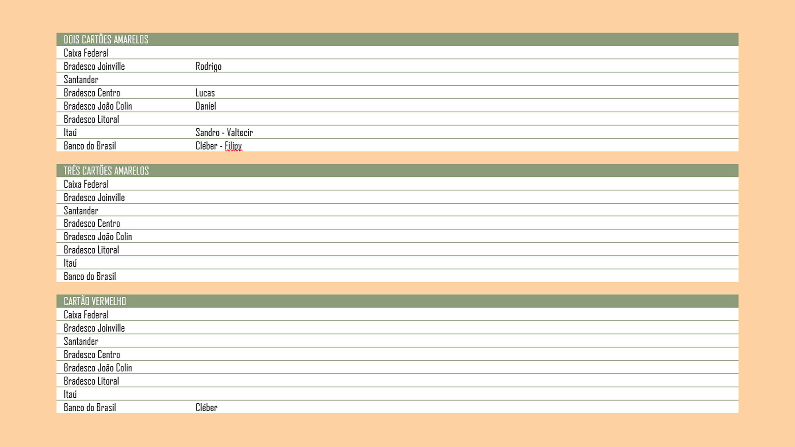 Na primeira partida da rodada a Caixa passou fácil pelo Itaú, com direito a hat-trick de Carlos Henrique (5 x 1). Em seguida, o Banco do Brasil empatou com o Bradesco Centro num emocionante 3 x 3 de final tumultuado. O Bradesco Joinville confirmou mais uma vez o favoritismo goleando o Bradesco Litoral (6 x 0). Numa bela partida sem cartões, o Santander assumiu a quarta colocação no último jogo da rodada, com direito a hat-trick de Luis Fernando, em sua avassaladora vitória por 6 x 1 contra o Bradesco João Colin.