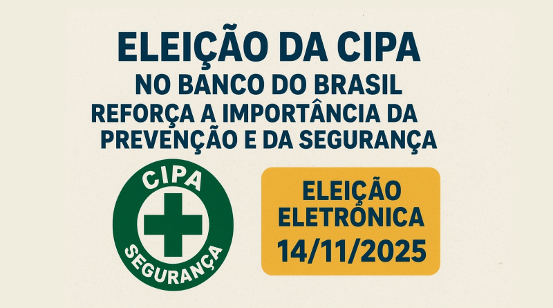 O Banco do Brasil comunicou oficialmente ao Sindicato dos Bancários de Joinville e Região a realização da eleição para a nova Comissão Interna de Prevenção de Acidentes (CIPA) do prédio da Agência Joinville/Palacete Niemeyer. A votação ocorrerá de forma eletrônica no dia 14 de novembro de 2025, com início às 6h e término às 23h.