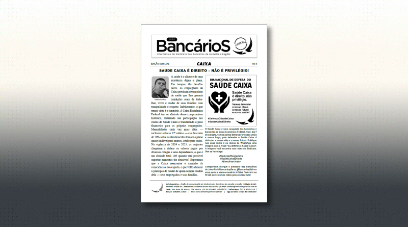 Caixa Econômica FederalInfo Bancários Info Bancários Especial Caixa # 03 6 de outubro de 2025 Bancários Joinville 22 visualizações Info Bancários Especial Caixa Ed.03: Saúde Caixa é direito – não é privilégio! [ Clique aqui para baixar ]
