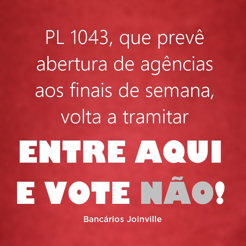 PL 1043 e a abertura de agências aos finais de semana: entre e vote NÃO!
