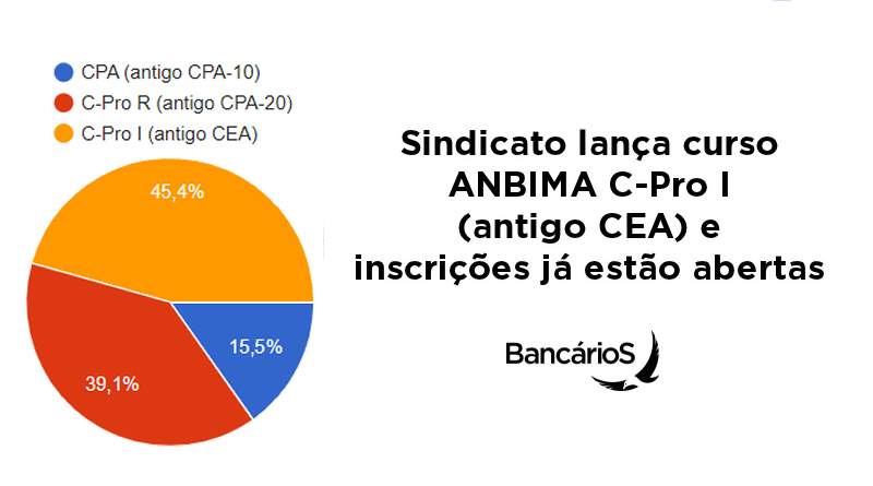 O Sindicato dos Bancários de Joinville e Região vai oferecer gratuitamente aos seus associados o curso preparatório presencial para a certificação ANBIMA C-Pro I (antigo CEA), uma das qualificações mais importantes para quem atua na área de investimentos e atendimento a clientes de maior complexidade.